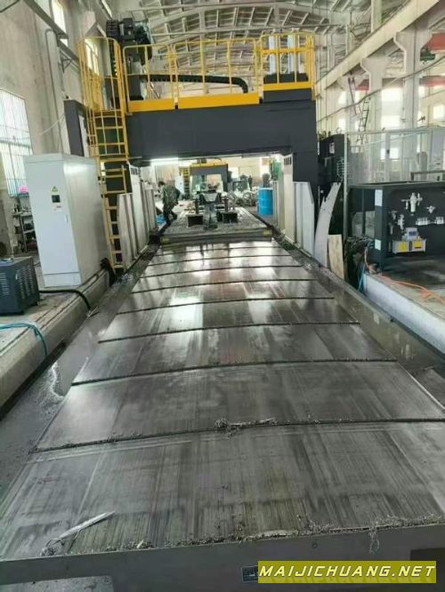 刚刚买下宁波海天3280数控龙门,工作台2500/8000mm,门宽3200mm,主轴BT50齿轮头,防滑枕420/420,带40把立卧式刀库,带全自动铣头,主轴油冷,法纳克MF-plus系统。